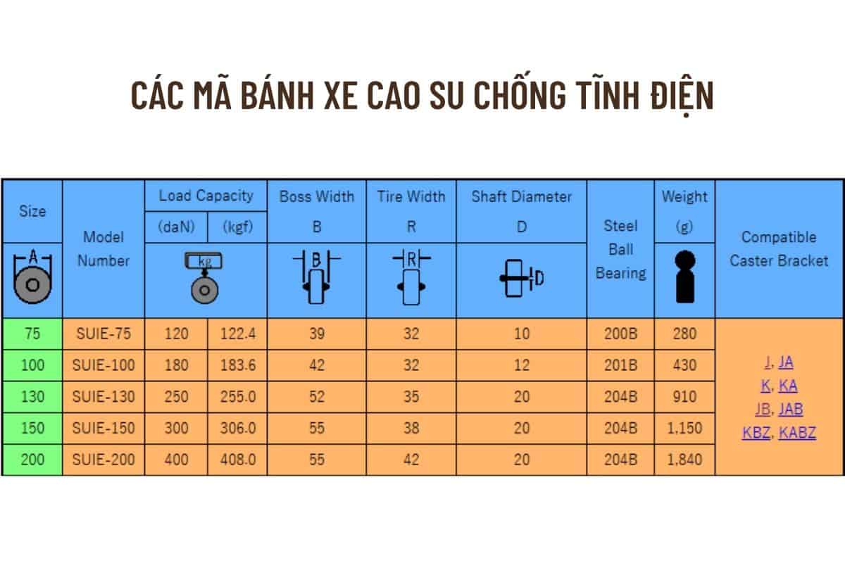 Các mã bánh xe cao su chống tĩnh điện