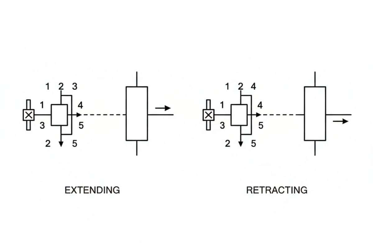 - Nguyên nhân phổ biến: Lỗi Van điều khiển 5/2 hoặc 4/3 (Không đảo chiều). Loại này thường dùng van 5/2 (khí nén) hoặc van 4/3 (thủy lực). Khi xi lanh đang đi ra, van phải đảo vị trí để ngắt khí ở cửa ra và cấp khí vào cửa hồi về. Nếu van không đảo chiều được (do hỏng coil điện, không có tín hiệu điện từ PLC, hoặc kẹt cơ khí do bẩn), xi lanh sẽ đứng im. Một nguyên nhân khác hiếm gặp hơn là đường ống cấp khí/dầu chiều về bị nghẹt hoặc gập.