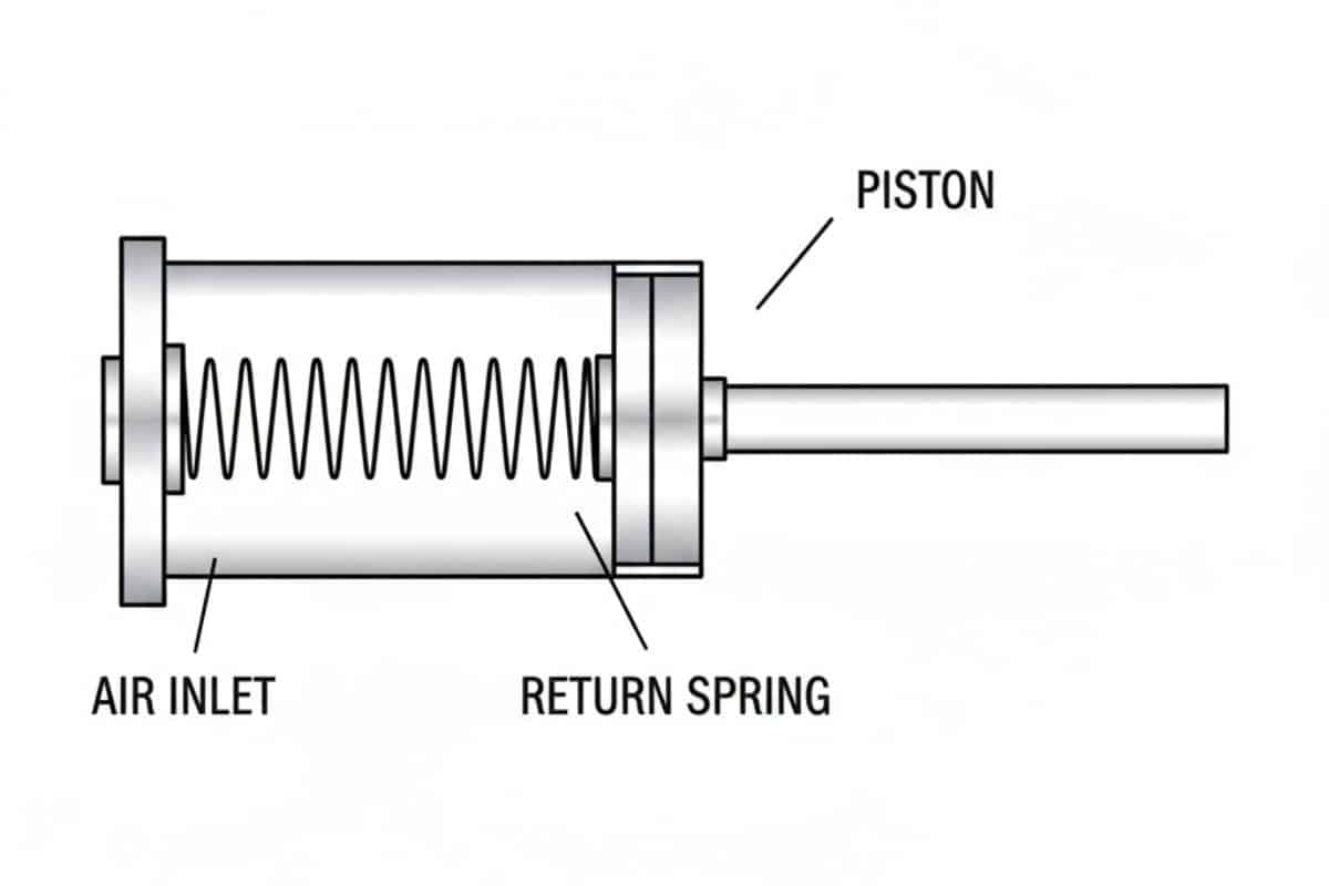 Đây là loại xi lanh chỉ dùng áp suất (khí hoặc dầu) để đẩy ra một chiều. Chiều còn lại (hồi về) dựa hoàn toàn vào lực đẩy của một lò xo cơ khí bên trong. Có hai nguyên nhân chính gây ra lỗi không hồi về ở loại này.