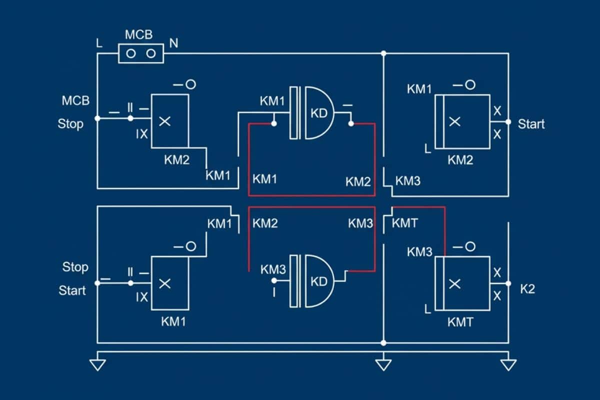 Để triển khai sơ đồ sao–tam giác, bạn nên nắm vững cấu tạo, đặc tính và yêu cầu khởi động của động cơ không đồng bộ 3 pha để chọn thời gian chuyển mạch và thông số bảo vệ phù hợp. Tham khảo bài Động cơ không đồng bộ 3 pha: cấu tạo, nguyên lý & cách khởi động để đối chiếu thông số kỹ thuật và lưu ý vận hành trước khi lắp đặt mạch sao tam giác.