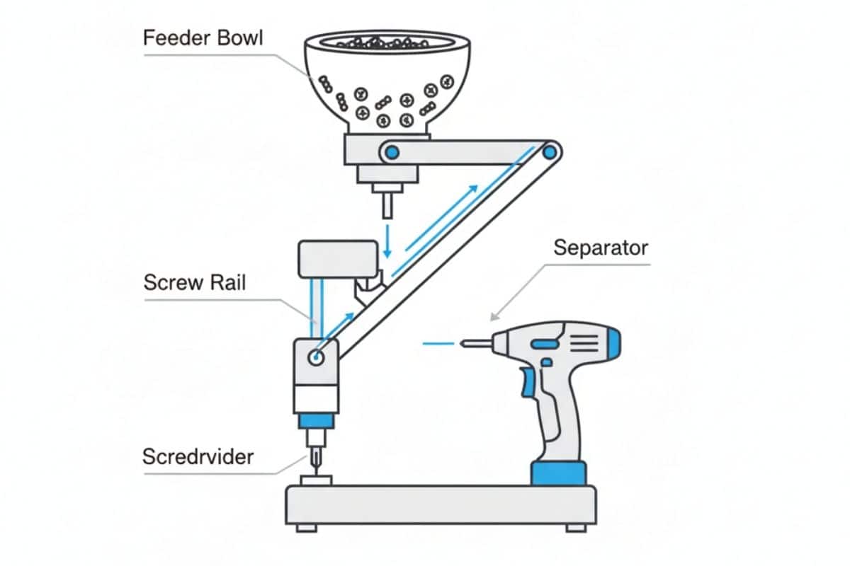 Một hệ thống cấp vít tự động tiêu chuẩn thường bao gồm các bộ phận chính sau: