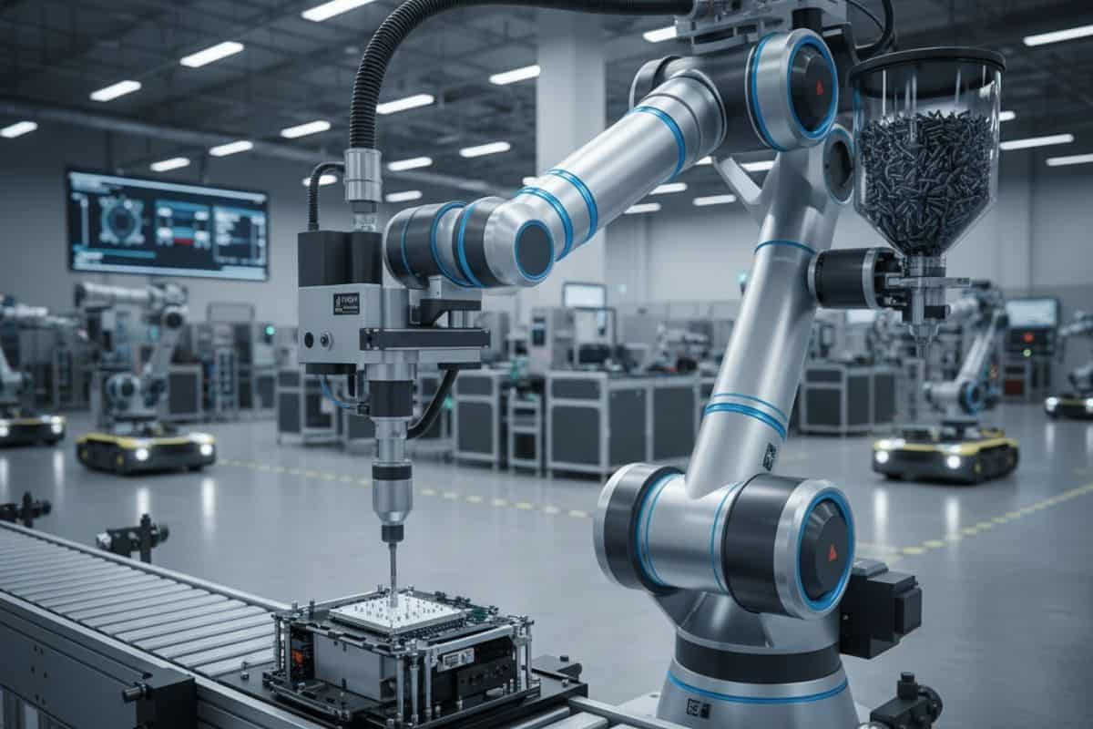 Đây không phải là một thương hiệu máy cấp vít cụ thể, mà là một xu hướng. Các cánh tay robot cộng tác (cobot) từ Universal Robots ngày càng được tích hợp với bộ cấp vít và tô vít điện để tạo ra các trạm siết vít tự động hoàn toàn.
